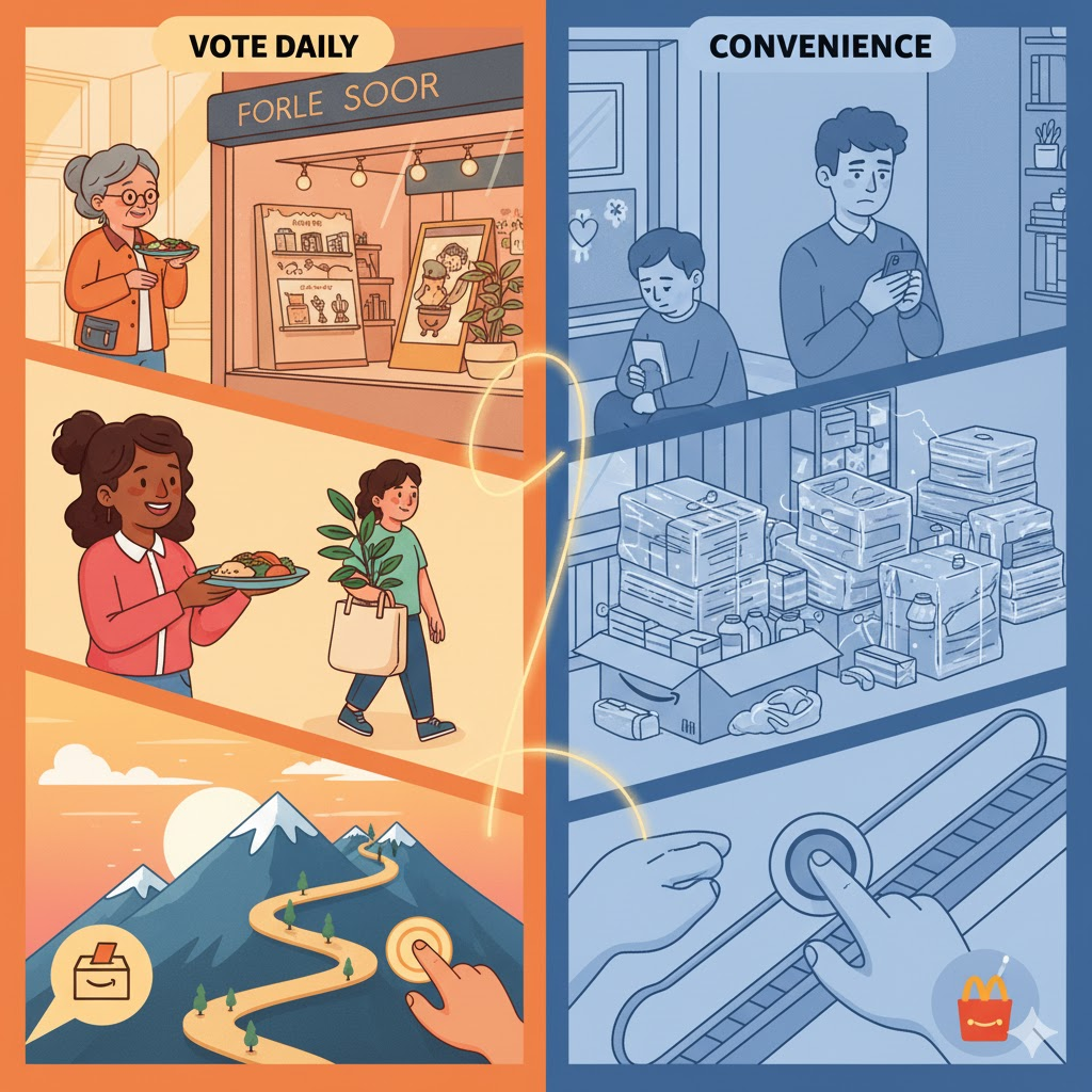 We vote daily by purchasing products at the grocery store or on Amazon. When we don't worry which tomato brand might be sold by a country that kills civilians, or from other countries that profit from genocide, war mongering, and authoritarianism, we vote for the status quo to stay unchanged.